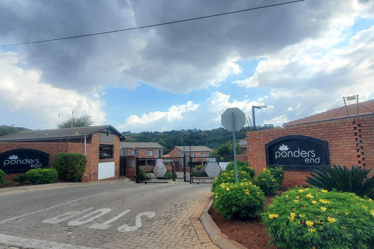 Bordering Kloofendal Nature Reserve, this pet-friendly Helderkruin townhouse offers a covered patio and private lawn — tenant in place until Feb 2026; two bedrooms, one bathroom.
