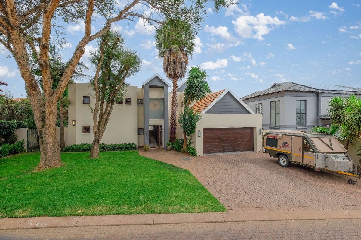 Experience the epitome of luxurious living in a peaceful haven offering privacy and comfort. Nestled in the centre of the Estate this home embodies the essence of estate living—a place where comfort and elegance meet. It’s not just a house; it’s a sanctuary that reimagines the meaning of home. Every detail exudes elegance and comfort with the open plan living areas that lead to a lovely covered patio, complete with a built in braai overlooking the inviting pool and lush garden – ideal for entertaining and relaxing. The sleek, open-plan kitchen is equipped with a gas stove, generous workspace, space for a double door fridge, scullery with space for three appliances, all designed for effortless cooking and entertaining. Large open plan dinning room, family TV room, office or 4th bedroom completing the downstairs with a guest loo.