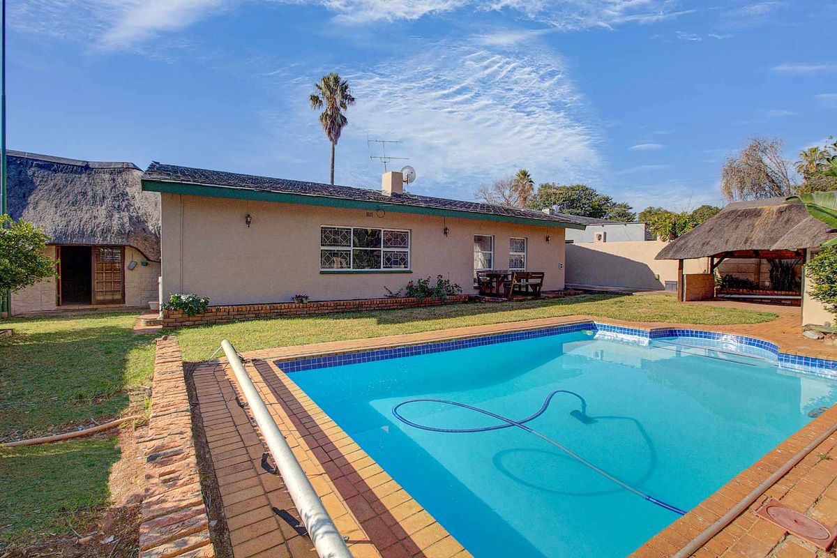 Four bedrooms, two bathrooms, and three garages in a spacious home with a renovated pool and separate flatlet.