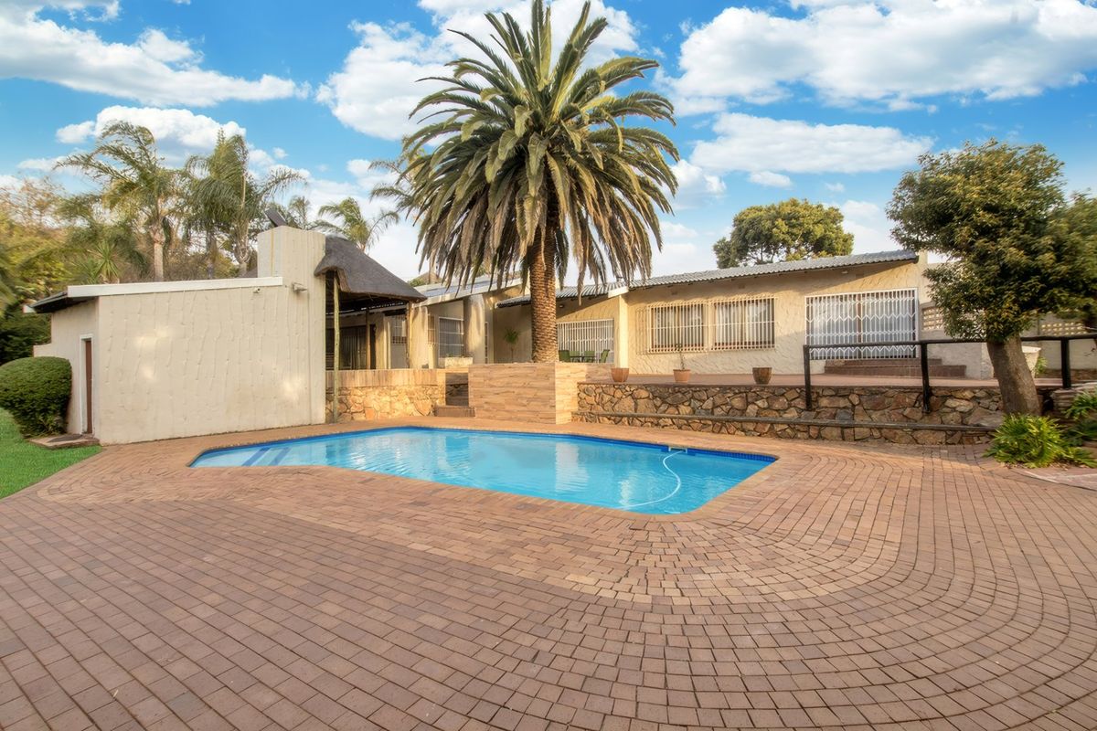Entertainer’s paradise on a generous stand with established gardens and relaxed, welcoming ambiance, featuring pool and patio-centred indoor-outdoor flow, bar-and-braai entertainment room. Five beds, 3½ baths, double garage.