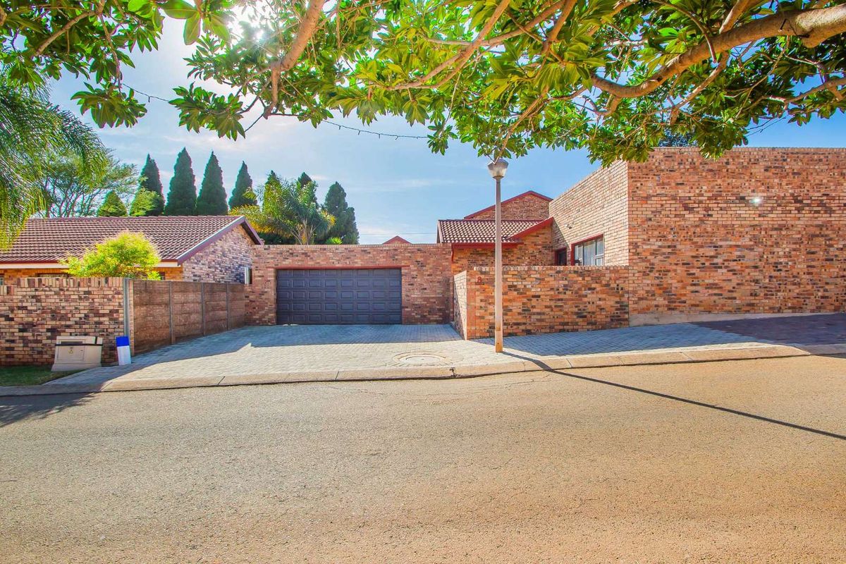 Flexible family living in a leafy neighbourhood: chef's kitchen, enclosed patio framing the pool with built-in braai, separate 2-bed cottage and double Hollywood garages — main house 3 beds, 2 baths.