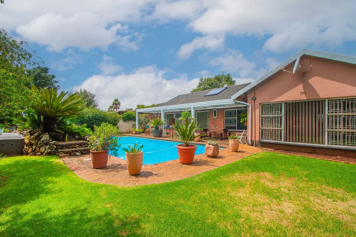 Entertainer's dream in a peaceful family-friendly neighborhood, with expansive outdoor entertainment area and sparkling marbelite pool. Main house has four bedrooms, two bathrooms and separate 2-bed flatlet.
