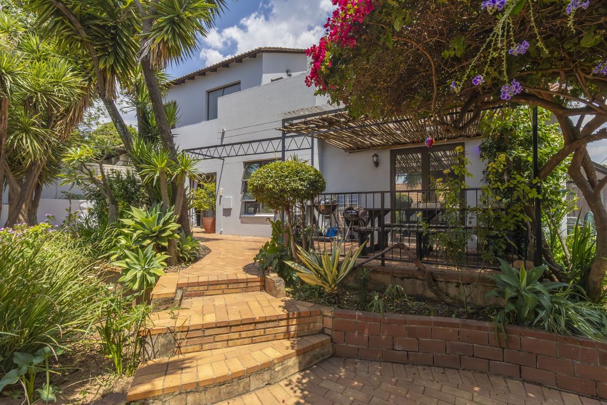 Perfect for multi-generational living, Radiokop convenience near schools, malls and restaurants. Dual homes-in-one with separate upstairs retreat, private garden and covered patio; five beds, two baths, double garage.