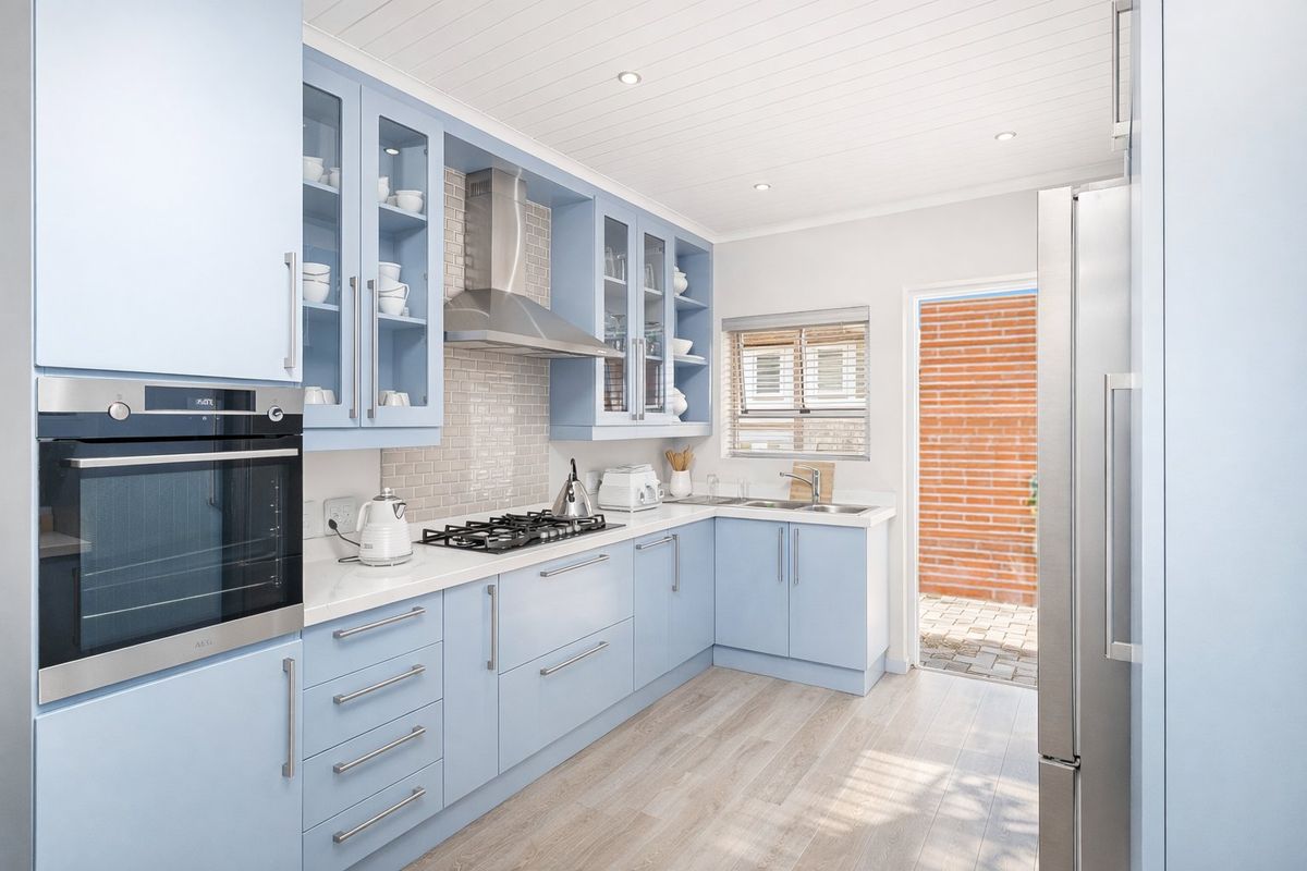From the moment you step inside, you’re welcomed by a light-filled open-plan kitchen, dining, and lounge designed for effortless modern living. The updated kitchen is finished with Caesarstone countertops, an eye-level oven, and a five-plate gas stove, all in immaculate condition. It flows seamlessly into the dining area and airy lounge, creating a space that feels both functional and beautifully inviting.