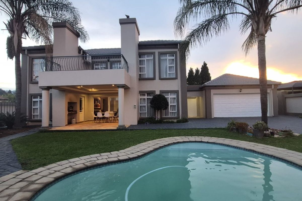 Resort-style family living in Ruimsig’s 24/7 estate opposite the Country Club — seamless indoor-outdoor flow to large lapa and pool, with five bedrooms, three baths and double garage.