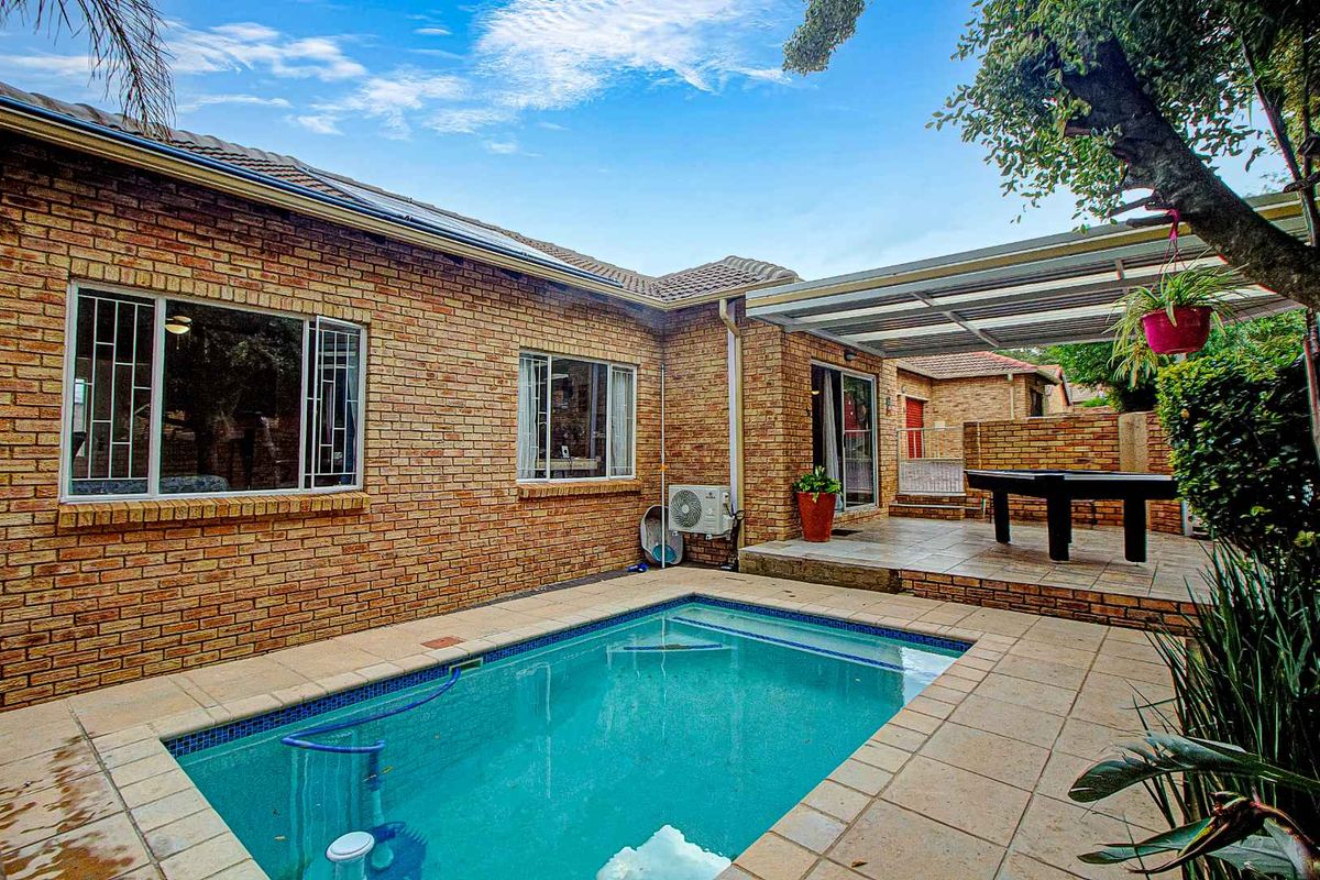 Entertainer’s townhouse near Clearwater Mall and Walter Sisulu Botanical Gardens, offering a solar-heated pool and spacious patio for year-round gatherings; open-plan kitchen, three bedrooms, two baths and a double garage