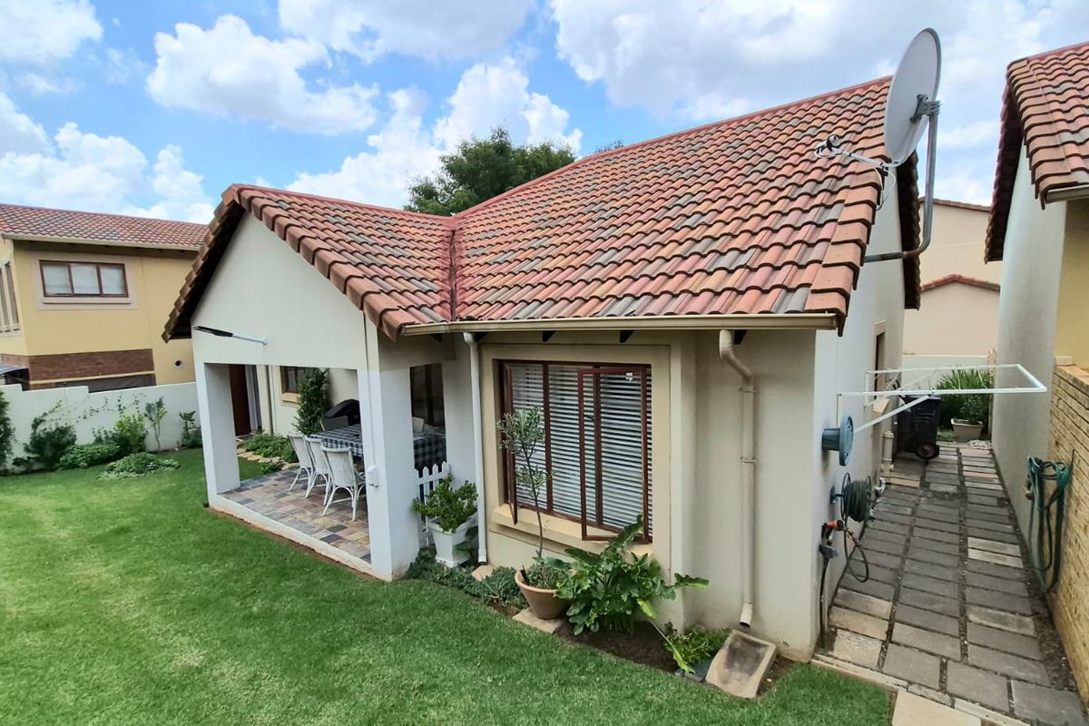 Step inside to discover a light-filled, open-plan living space designed for effortless living. The modern kitchen features granite countertops, a gas stove, and ample cabinetry, seamlessly flowing into the living area. Glass doors open onto a covered patio overlooking a lush, private, pet-friendly landscaped garden — perfect for relaxing or entertaining. Two well sized bedrooms and a full bathroom. Double automated garage, and a generous storeroom at the rear of the garage. Spacious driveway with additional parking. Solar panels (rental option available). Residents enjoy access to the estate’s clubhouse, swimming pool, braai facilities, and beautifully maintained green spaces — all supported by excellent 24-hour manned security.
