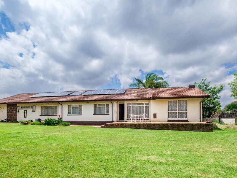 Enjoy energy-smart family living in Witpoortjie with a large 950m² garden for entertaining, open-plan living, solar power, and convenient double carport plus garage; three bedrooms, two bathrooms.