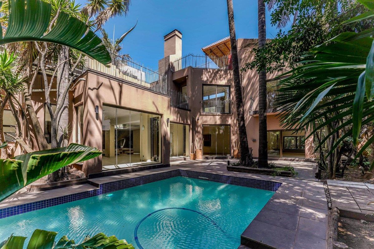 Two-level house with rooftop garden, six en-suite bedrooms, multiple living areas, pool, gourmet kitchen, and guest flatlet.