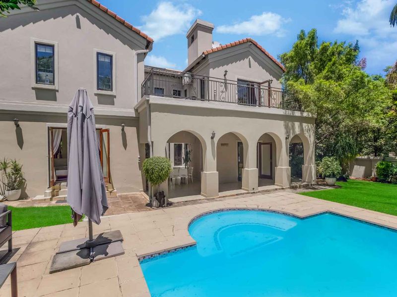 Entertainer's family retreat in sought-after Broadacres, with covered patio and built-in braai overlooking private garden and pool; modern kitchen, three bedrooms, 2.5 baths, double garage.