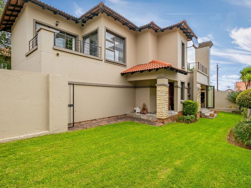 Relax in Stratford Gardens, Broadacres — a secure, family-friendly estate with clubhouse and pool. Thatched gazebo and landscaped garden; four bedrooms, 4.5 baths, triple garage.
