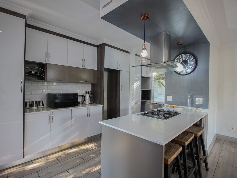 Entertainer's retreat in a quiet estate near Lanseria Airport, featuring industrial-brick interiors, a private pool and modern kitchen — three bedrooms, 2.5 baths and automatic garage.