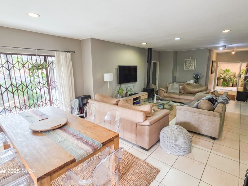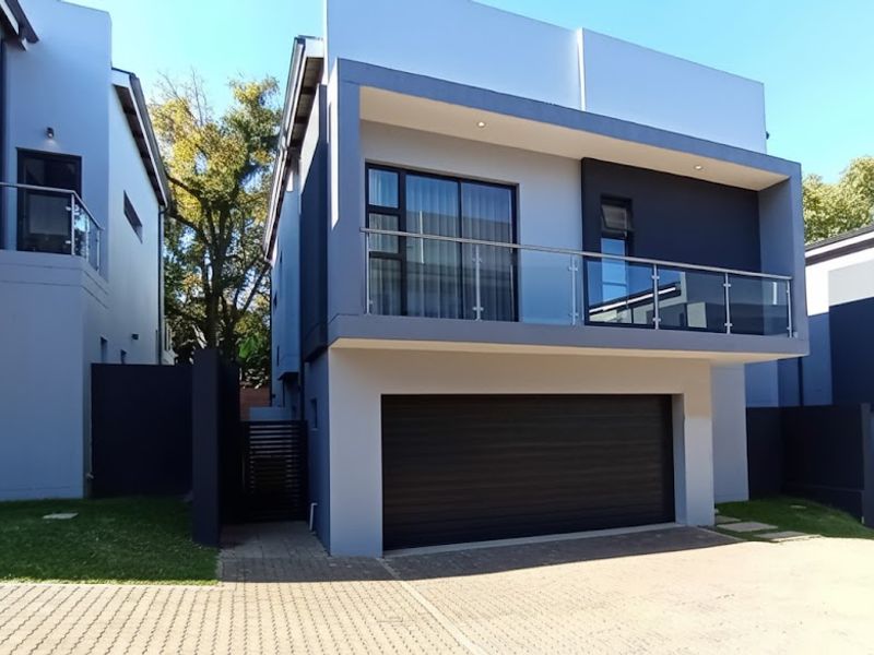 Enjoy effortless city living and private security in Bryanston, minutes from Sandton Central — freestanding home with gourmet kitchen and off‑grid solar/water tanks; four beds, 3.5 baths.