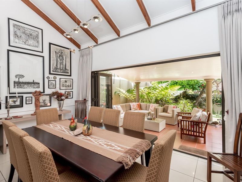 Sophisticated family living in the heart of Bryanston, inside an exclusive development — seamless indoor-outdoor flow to a private garden and wine cellar; four bedrooms, 4.5 baths, double garage.