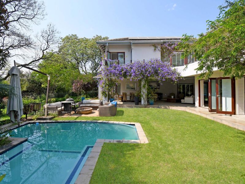Host multi-generational living in Bryanston's heart — three private residences with pool and library-turned-poolhouse, indigenous gardens and nine en-suite bedrooms with ample parking.