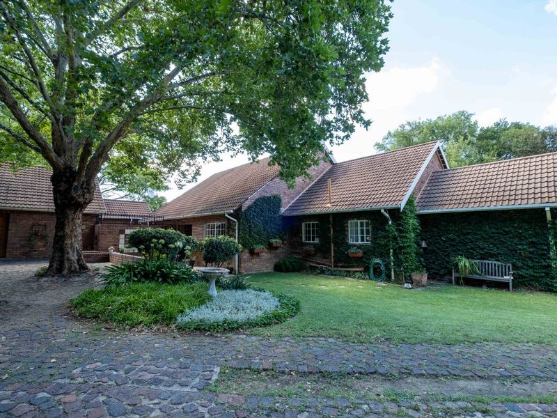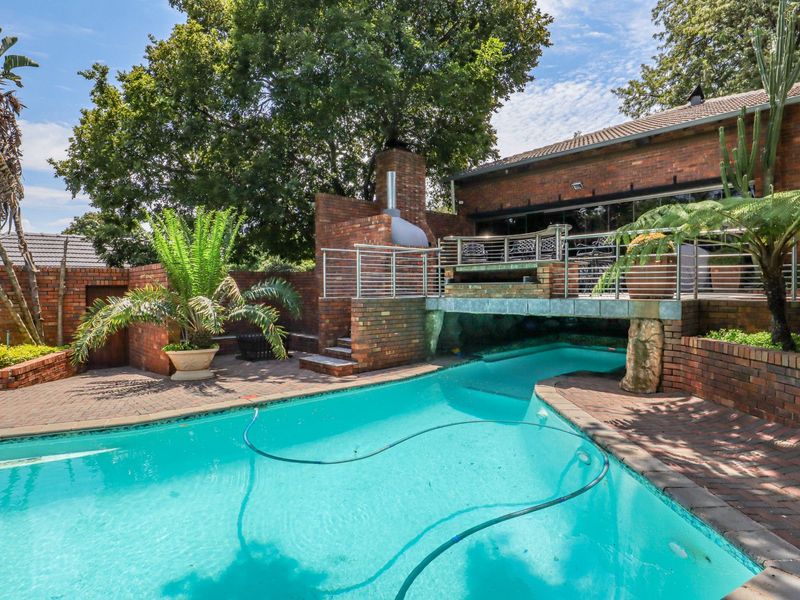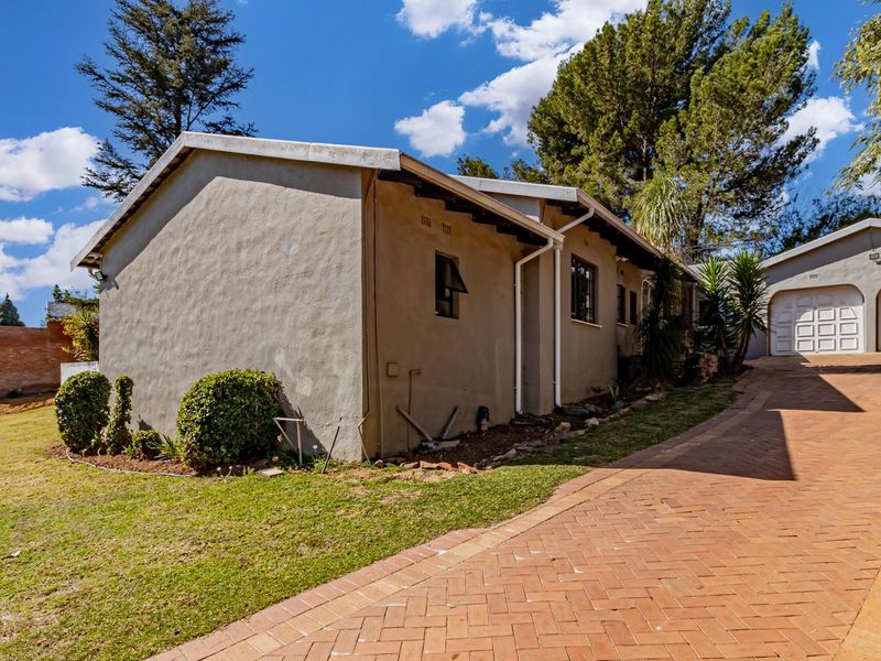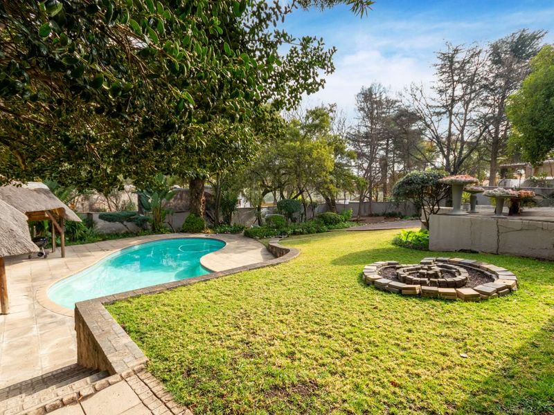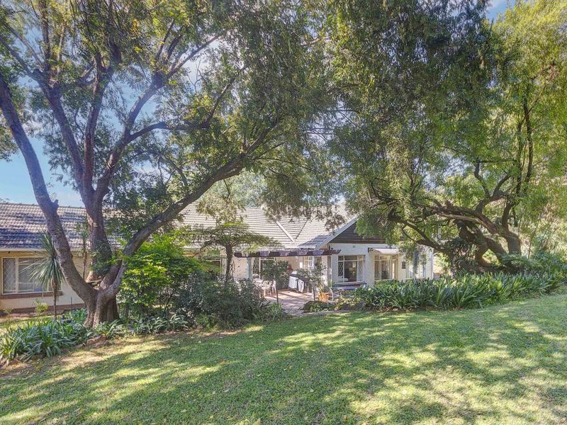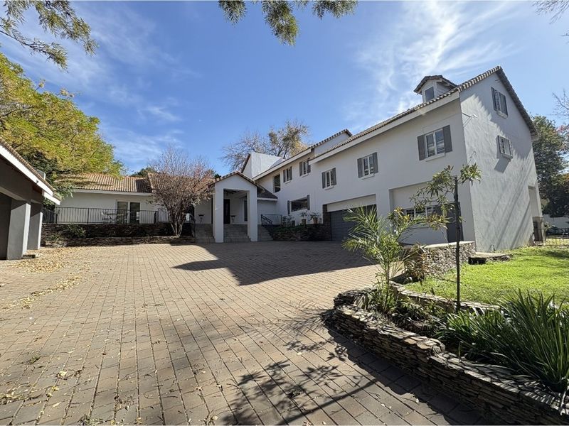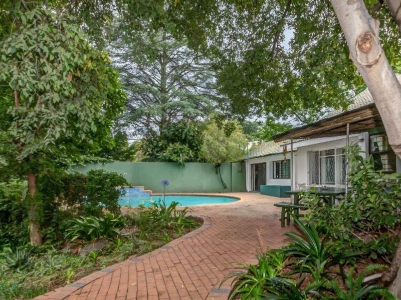 Entertain effortlessly in an established treed garden in central Bryanston, close to the Country Club and shopping, with income-generating cottages and six bedrooms, three bathrooms.