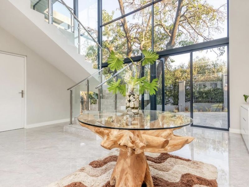 Relax in Bryanston's leafy neighbourhood with effortless city access — open-plan entertaining, gourmet kitchen, private jacuzzi and manicured garden; three ensuite bedrooms and secure automated garage.