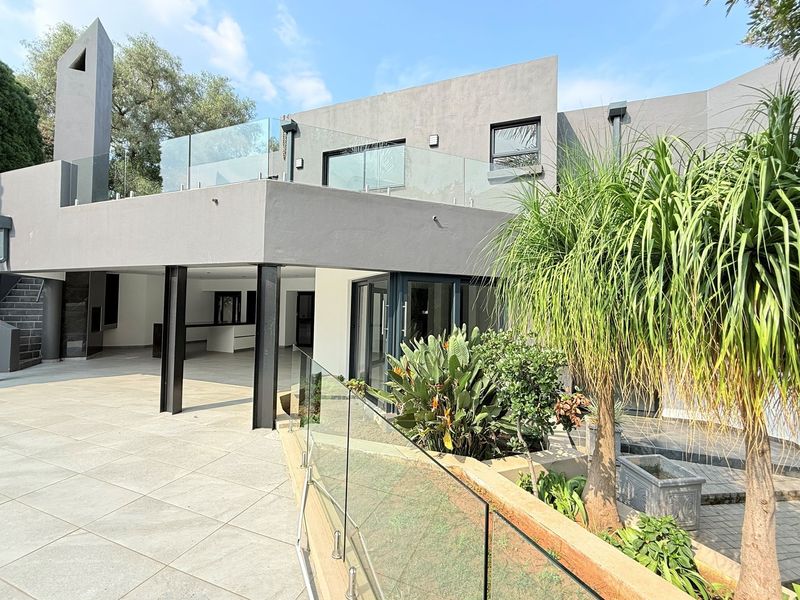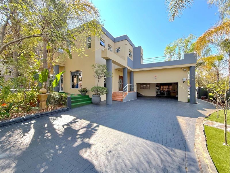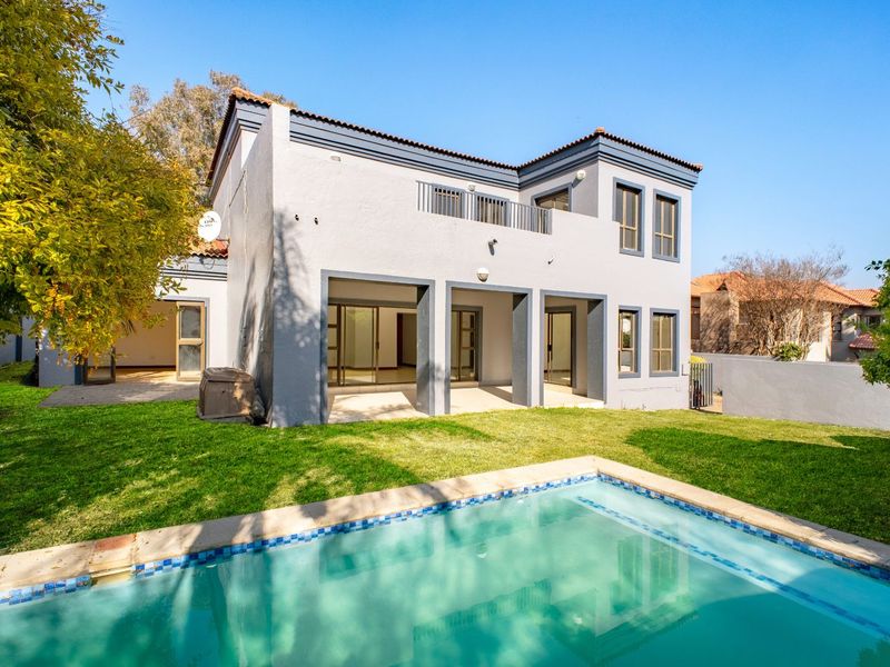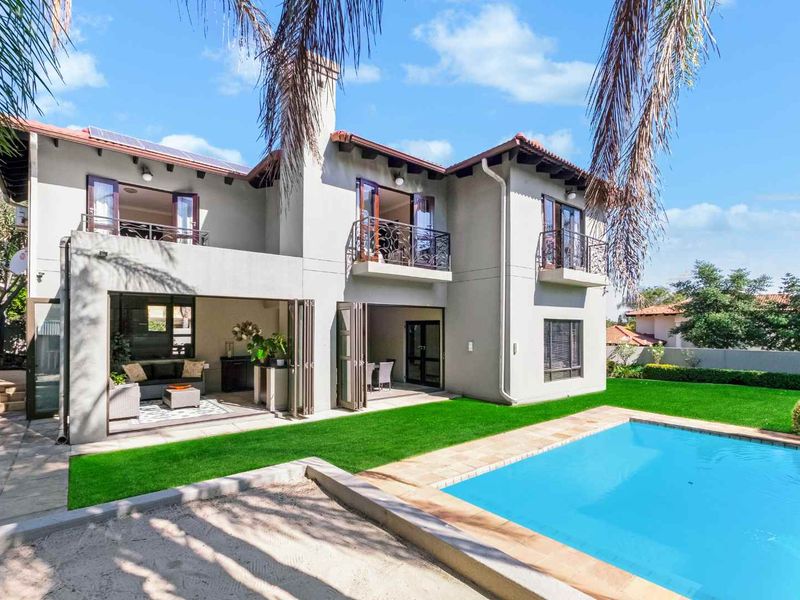 Entertainer's haven in Dainfern Golf Estate ā seamless indoor-outdoor living with built-in bar, braai and pool on the patio, plus five bedrooms and 4.5 bathrooms.
