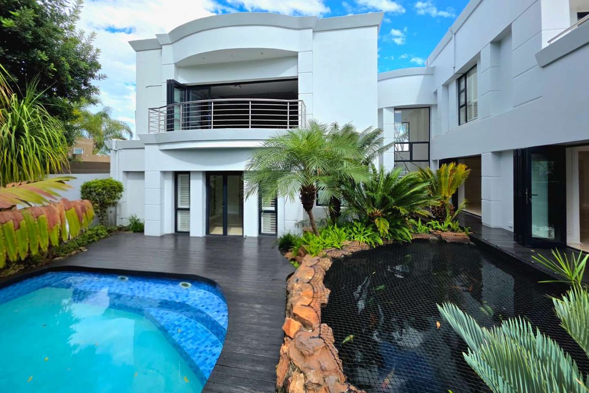 Frontline fairway living in Dainfern Golf Estate with expansive views and entertainer's private cinema and bar; freshly renovated four-bedroom home with 4.5 baths and three garages.