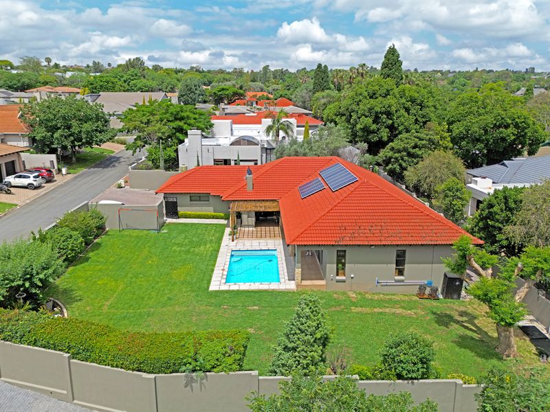 Riverside family retreat in secure Jukskei Park, walking distance to Meander shops and cafés, with lush garden, entertainment patio and pool, plus a versatile 42 sqm studio.