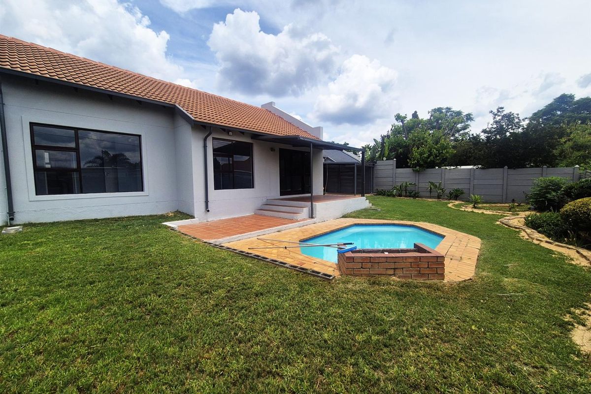 Relaxed family entertaining in a secure Fourways community, steps from schools and shops — covered patio, splash pool and bonfire pit, three bedrooms, two bathrooms and single garage.