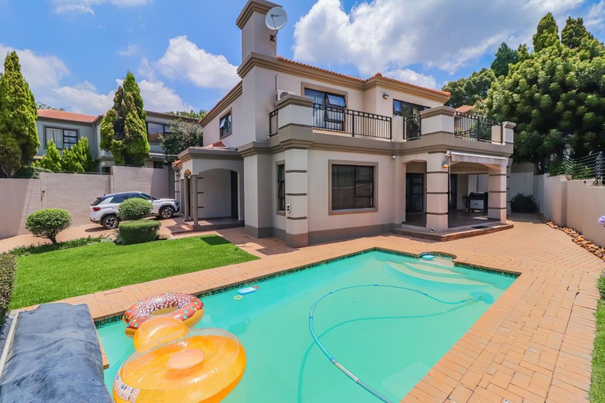 Relaxed family living and effortless entertaining in an intimate, access-controlled enclave near Rivonia, Morningside and Woodmead — private swimming pool, three bedrooms, 2.5 bathrooms and double garage.
