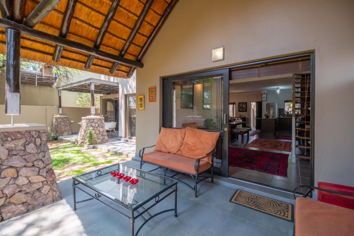 Reserve-side living with abundant natural light and a wraparound garden in Bushbaby Reserve; loft for studio or office, granite kitchen, two bedrooms, two bathrooms, two covered parking bays.