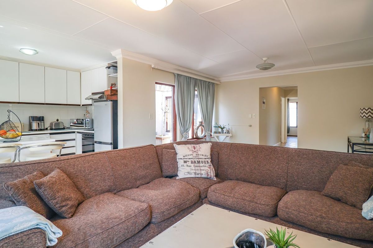 The two spacious bedrooms are thoughtfully appointed, with the main bedroom boasting a full en-suite bathroom and ample built-in cupboard space. A second bathroom, equipped with a shower, basin, and toilet, conveniently serves the second bedroom. Additional features include single garage plus dedicated parking bay, a separate 6m2 storeroom staff accommodation, a Communal swimming pool, remote-controlled access, electric fencing and CCTV security.