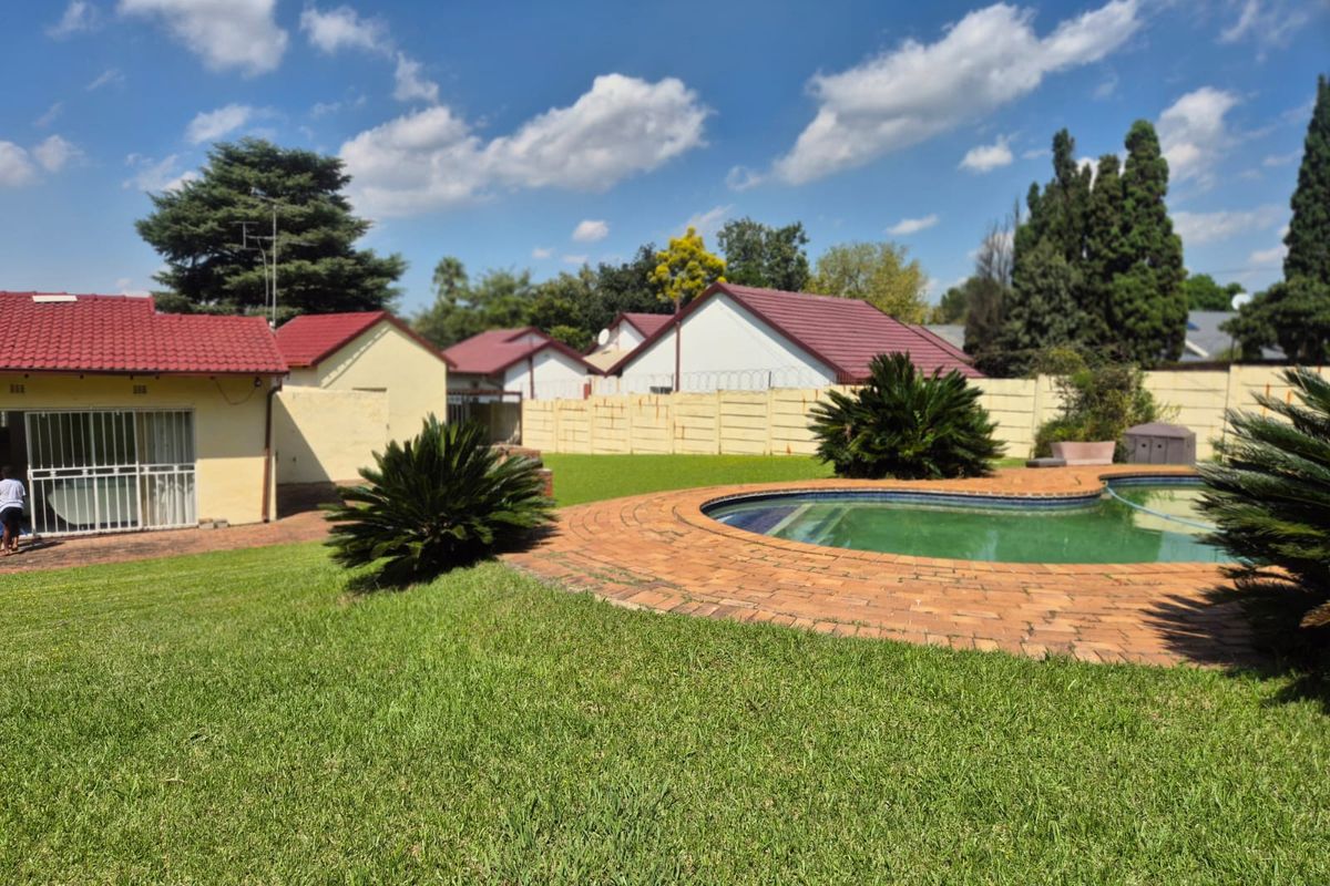 Entertainer's haven in Kelvin, Sandton — relaxed family living with pool and expansive 2,033m² garden, pajama lounge and staff quarters; three bedrooms, double garage.