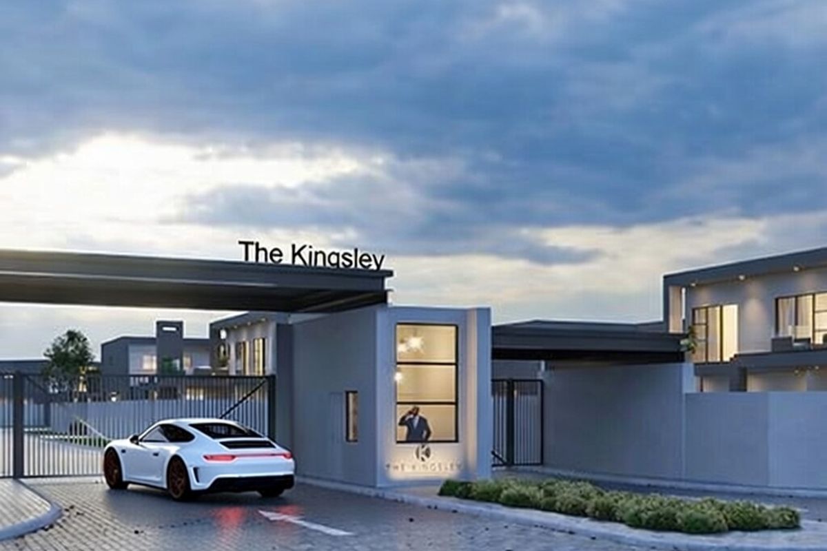 Entertainer's lifestyle in The Kingsley, an upmarket secure estate with landscaped grounds and quick amenity access. Open-plan home features patio with built-in braai, three beds, three baths, double garage.