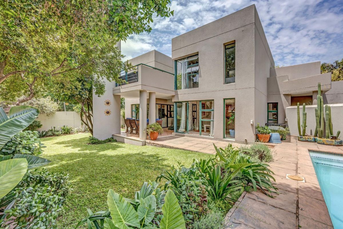 Relaxed family living in the heart of Sandton, minutes from Redhill School and Morningside Mall — private established garden with pool and tree fern, three-bedroom, two-bath, double garage.