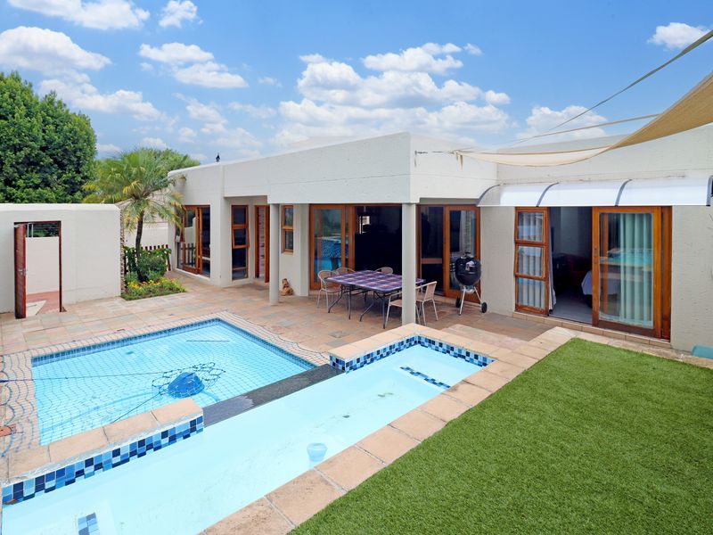 Alfresco entertainers' home in Paulshof, close to Rivonia ramps and top schools, with pool, undercover patio and built-in braai. Four bedrooms, 2.5 baths and double garage.