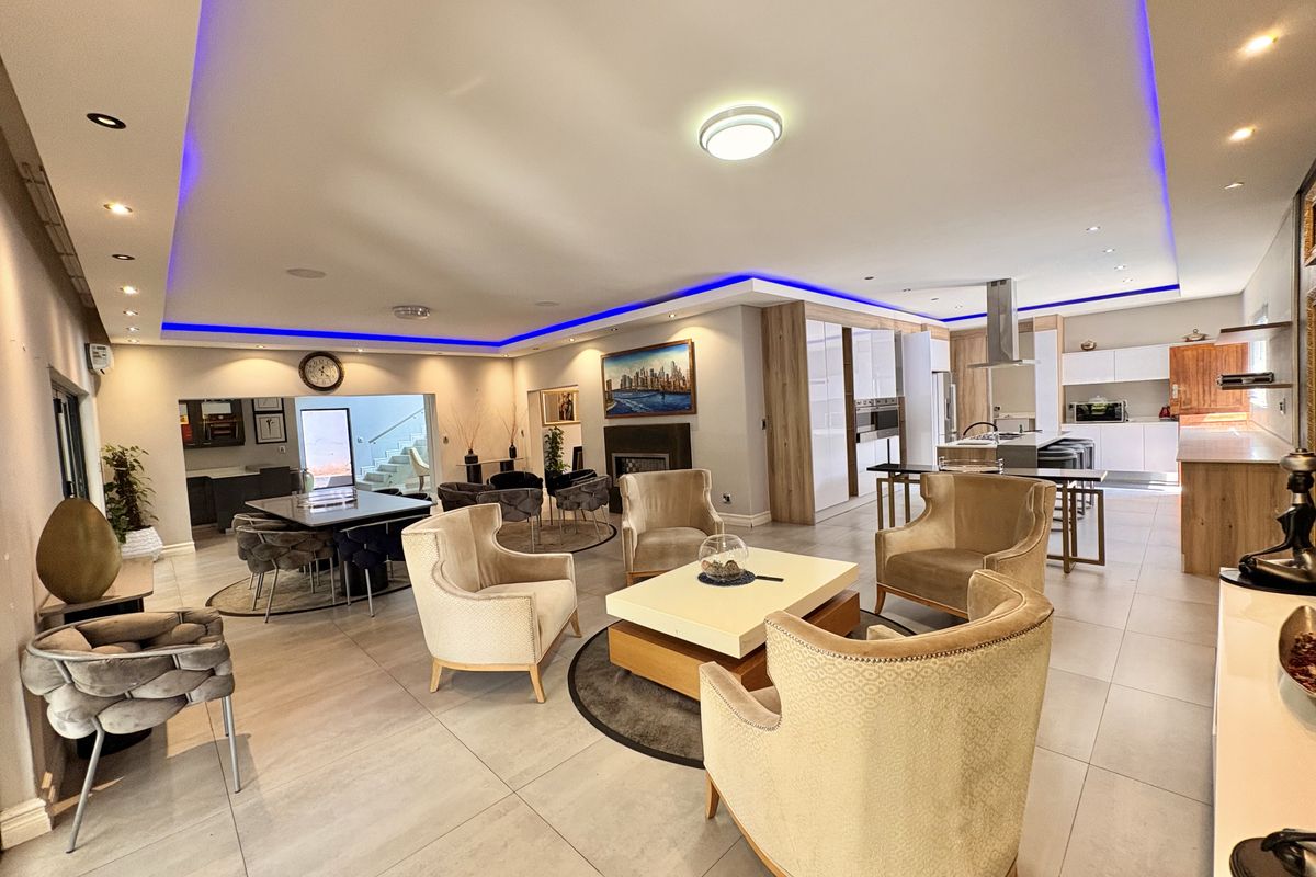 When you step into the house you are greeted by a beautiful foyer / entrance lounge. Connected to the foyer is a beautiful lounge that holds more than enough space for both a dining room and living room. Connected to your lounge is a modern kitchen with clean and beautiful touches. The outdoor area greets you with a large patio that is not only beautiful but also perfect for hosting. When you step down the patio stairs you enter a large garden with a pool. This property is a double story, so you will find bedrooms both downstairs and upstairs, all the bedrooms are spacious and beautiful. (6 bedrooms and 6.5 bathrooms). 5 of the bedrooms are en-suite). The second floor of this home takes you into a whole new world with features such as an in house, a dining/lounge area, and a massive balcony/outdoor area.