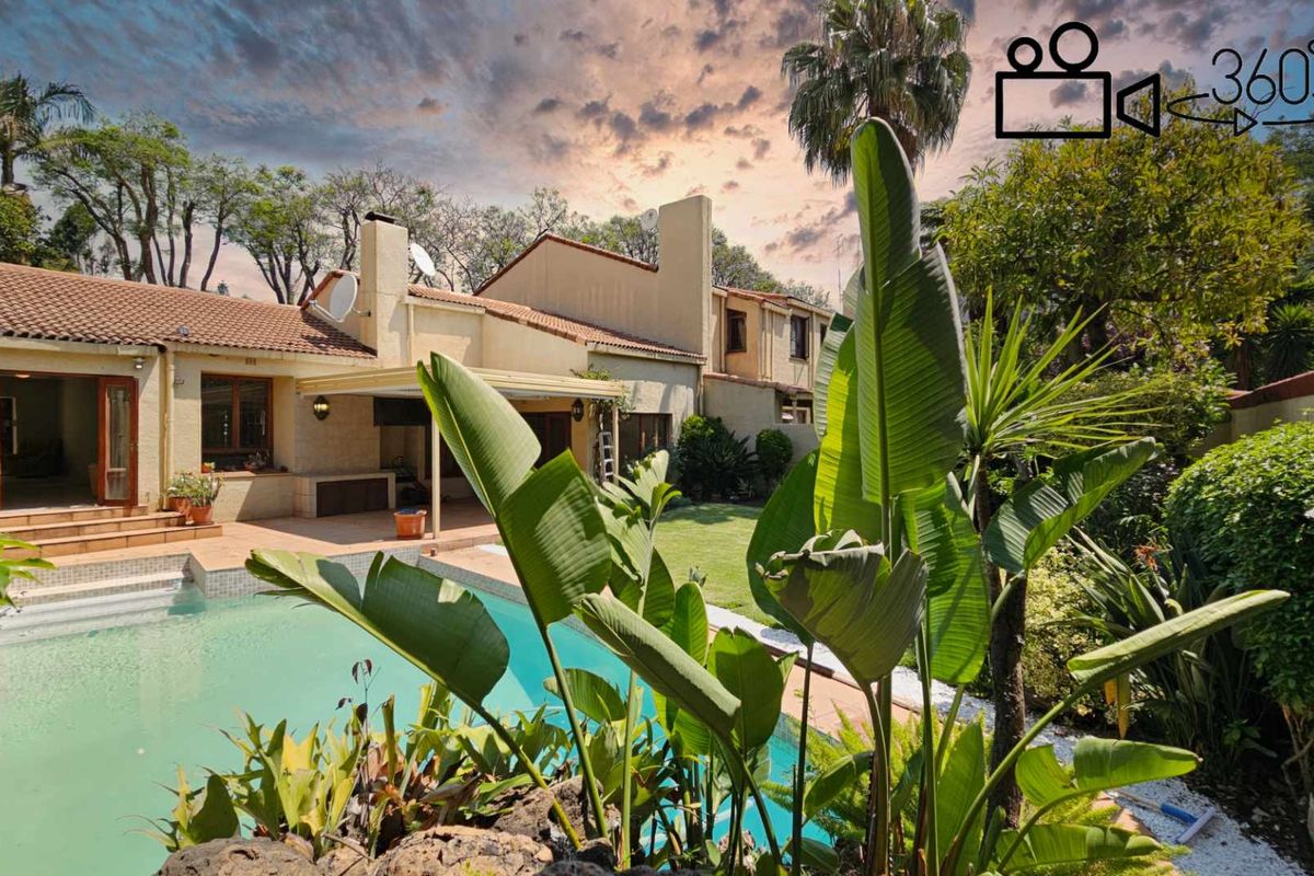 Entertain and relax in Sandton's vibrant heart with a private garden oasis and rock-formation pool, covered patio, easy access to Gautrain and malls — three bedrooms, 2.5 baths, double garage.