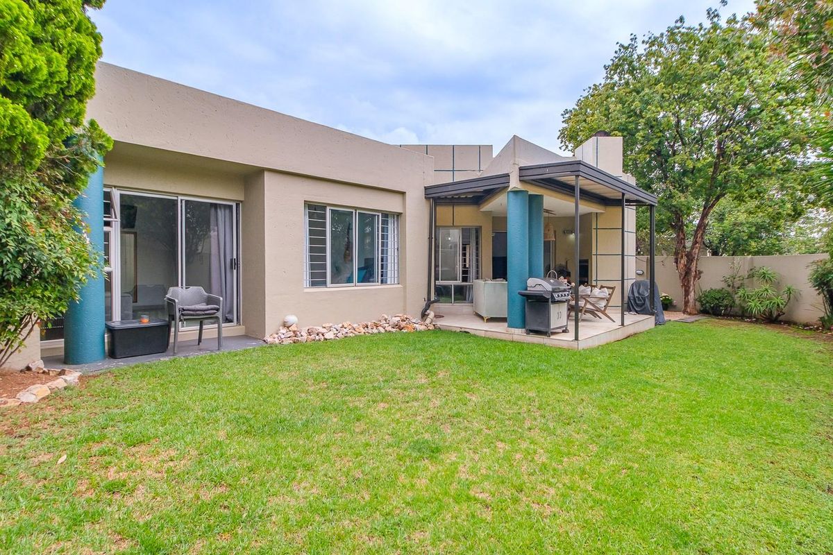 Secure, family-focused living in prestigious Sunninghill Gardens with 24/7 manned security and Gautrain access; single-level home with solar power system and covered patio, 3 beds, 2 baths.