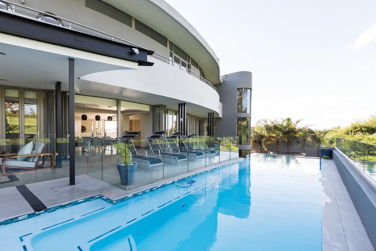 Entertainer's paradise in exclusive Sandton Country Club Estate, minutes from Sandton CBD and Morningside. Features heated pool with boma fire pit, Smeg kitchen, lift; five bedrooms, five baths, three garages.