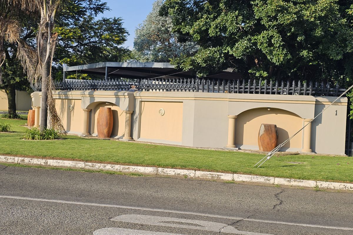 Entertainer's dream with expansive patios and a sparkling pool, set on 2,342 m² landscaped grounds featuring a lapa with yellowwood bar and built-in braai; four bedrooms, three bathrooms.