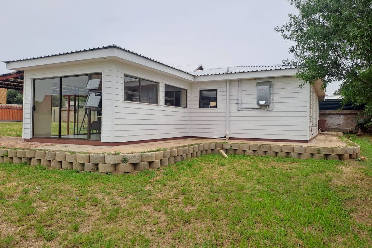 Weekend waterfront escape a short stroll from Vaal Marina, offering open-plan living and a large covered patio — room for a lapa and pool, three bedrooms, two bathrooms.