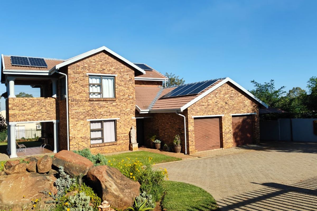 The home is surrounded by a well-established garden with fruit trees, creating a peaceful, natural setting. It also includes a 5kW solar system, prepaid electricity, a double garage, and a single carport. The property is fully enclosed for security and privacy.