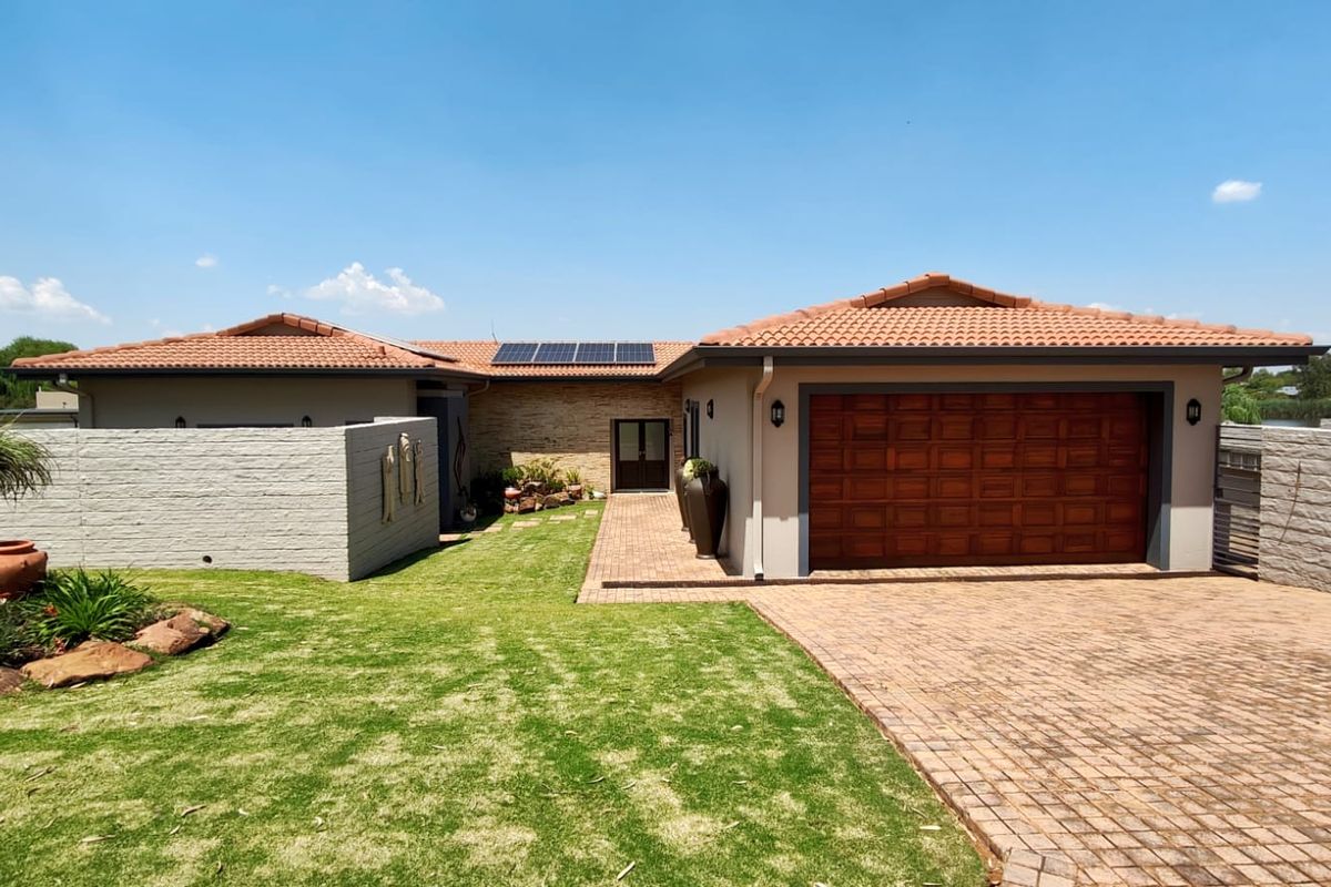 Resort-style Vaal Dam living in Harbour Town Golf Estate—entertain on an enclosed patio and bar beside a heated pool and manicured garden; four bedrooms, double garage.