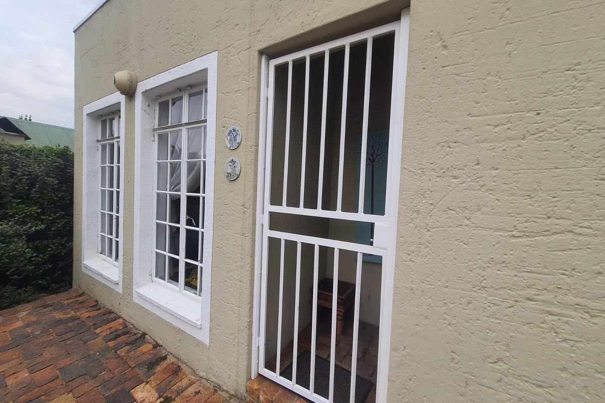Serene water-feature view from a heated patio with roll-up canvases, overlooking pool, braai and garden with borehole. Open-plan home, 2-bed/2-bath plus separate 3rd unit, double garage and secure complex.