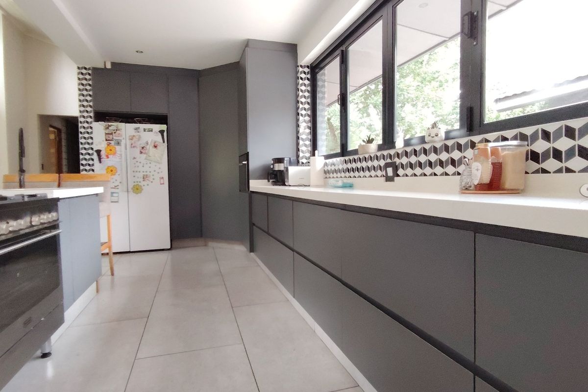The home also offers excellent sustainability features, including an off-grid water supply with a borehole and a 2,200-litre JoJo tank connected to both the home and irrigation system, as well as a 300-litre solar geyser for energy efficiency.