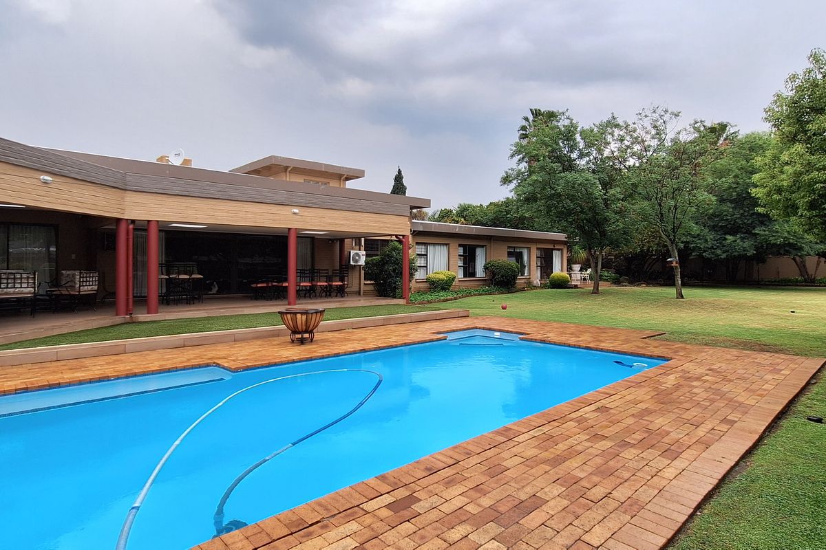 Effortless family entertaining in SW5 Vanderbijlpark, steps from top schools, shops and Emfuleni Golf Course — covered patio leads to a solar-heated pool. Four bedrooms, three bathrooms.
