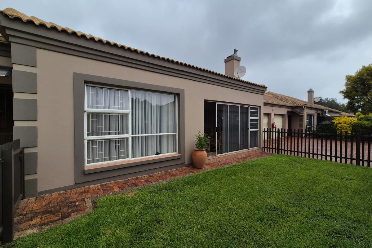 Relax in a secure, tranquil setting with 24-hour security, private garden, and indoor-braai patio; open-plan lounge/dining, two bedrooms, one bathroom, plus electrical garage.