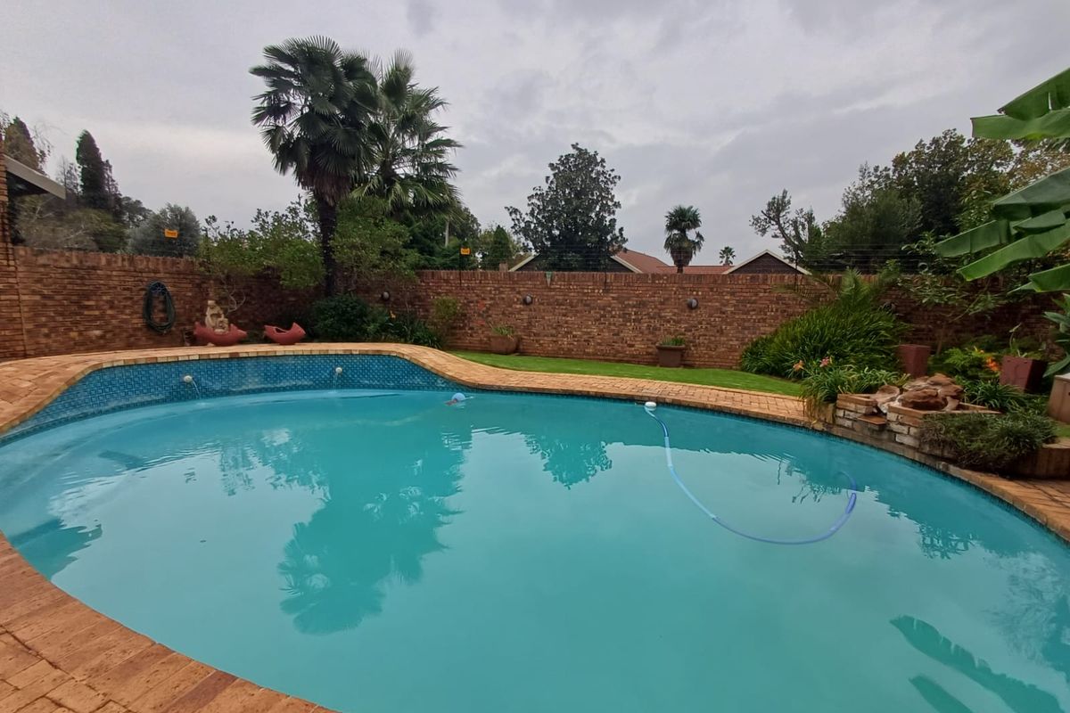 Entertainer's dream in a quiet, leafy neighborhood with a huge established garden, swimming pool and lapa — spacious living, study and separate TV lounge; four bedrooms, two bathrooms.