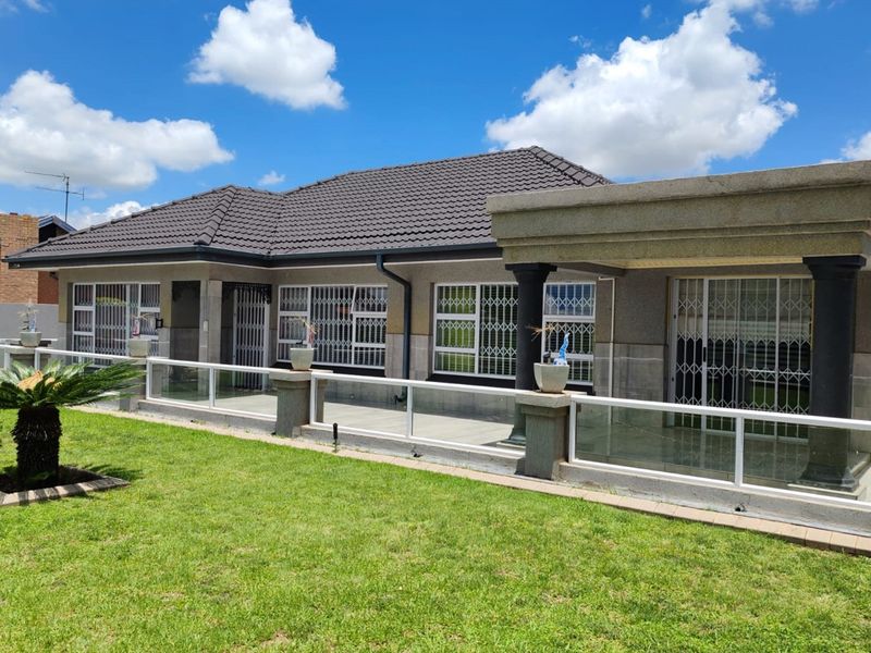 Peaceful family living in prestigious Arcon Park, Vereeniging — expansive front and back gardens and entertainment area with built-in braai and jacuzzi. Three bedrooms, two baths, double garage.