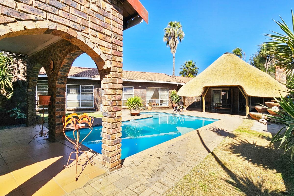 Located on a quiet residential street is this immaculate family home, built with attractive dark face brick for superb kerb appeal. It boasts a sizable stand, featuring a borehole, a sparkling heated pool, a lapa with a built-in braai and bar, a double garage, a tandem carport, and a fully self-contained garden cottage.