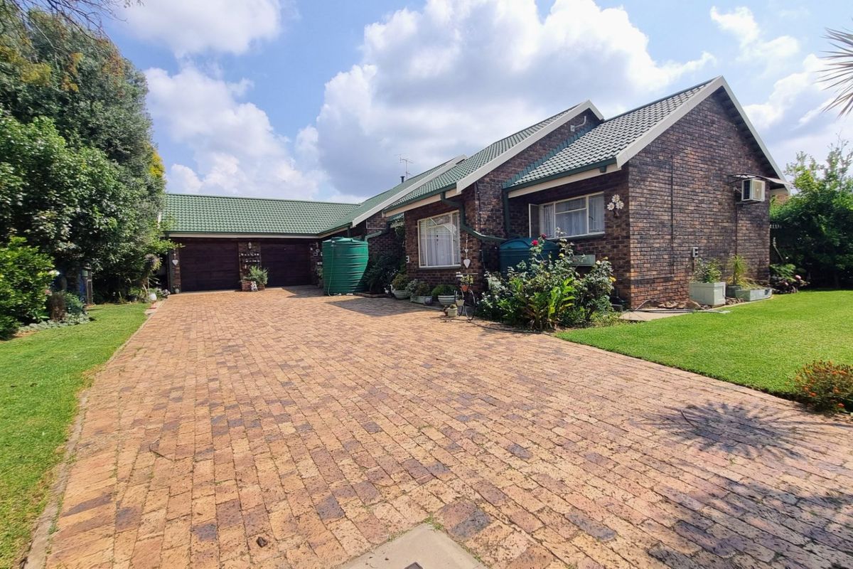 The kitchen has beautiful built-in cupboards, ample counter space, a 5-plate gas hob, double eye-level oven and a spacious walk-in pantry. A separate scullery and separate laundry room add to the property's functionality. Outside, the enclosed sunroom/conservatory is filled with natural light and lush greenery, creating a tranquil atmosphere. The 100,000-liter swimming pool features a water feature, while the backyard offers multiple fruit trees and irrigation.