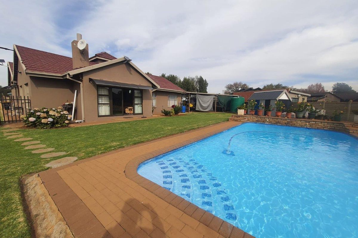 Expansive private garden and sparkling pool in a peaceful setting on 1905 m² — perfect for entertaining with braai, solar off-grid, double garage plus 3-car carport; 3 beds, 2 baths.