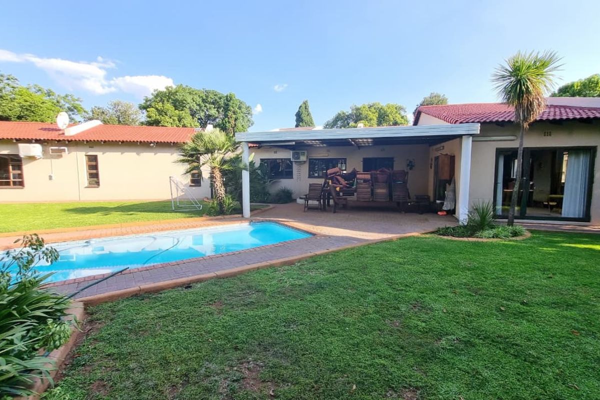 This stunning 4-bedroom home is a walking distance from Suikerbos Primary School and the bus stop for numerous High Schools. It is near the R54 and the R42. There are 2 shopping centres nearby and Riversquare Mall is about 5 minutes' drive. This house is a masterclass in elegance and functionality, offering a perfect blend of comfort, entertainment, and relaxation. The spacious bedrooms, complete with large windows and built-in cupboards, provide a serene environment for family members and guests alike. The main bedroom boasts a large, walk-in closet, while all bedrooms feature aluminium folding doors leading out to the patio and sparkling swimming pool.
